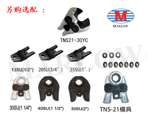 ◆ 标配不锈钢水管压接模具 : 1/2"(13SU)、3/4"(20SU)、1"(25SU)